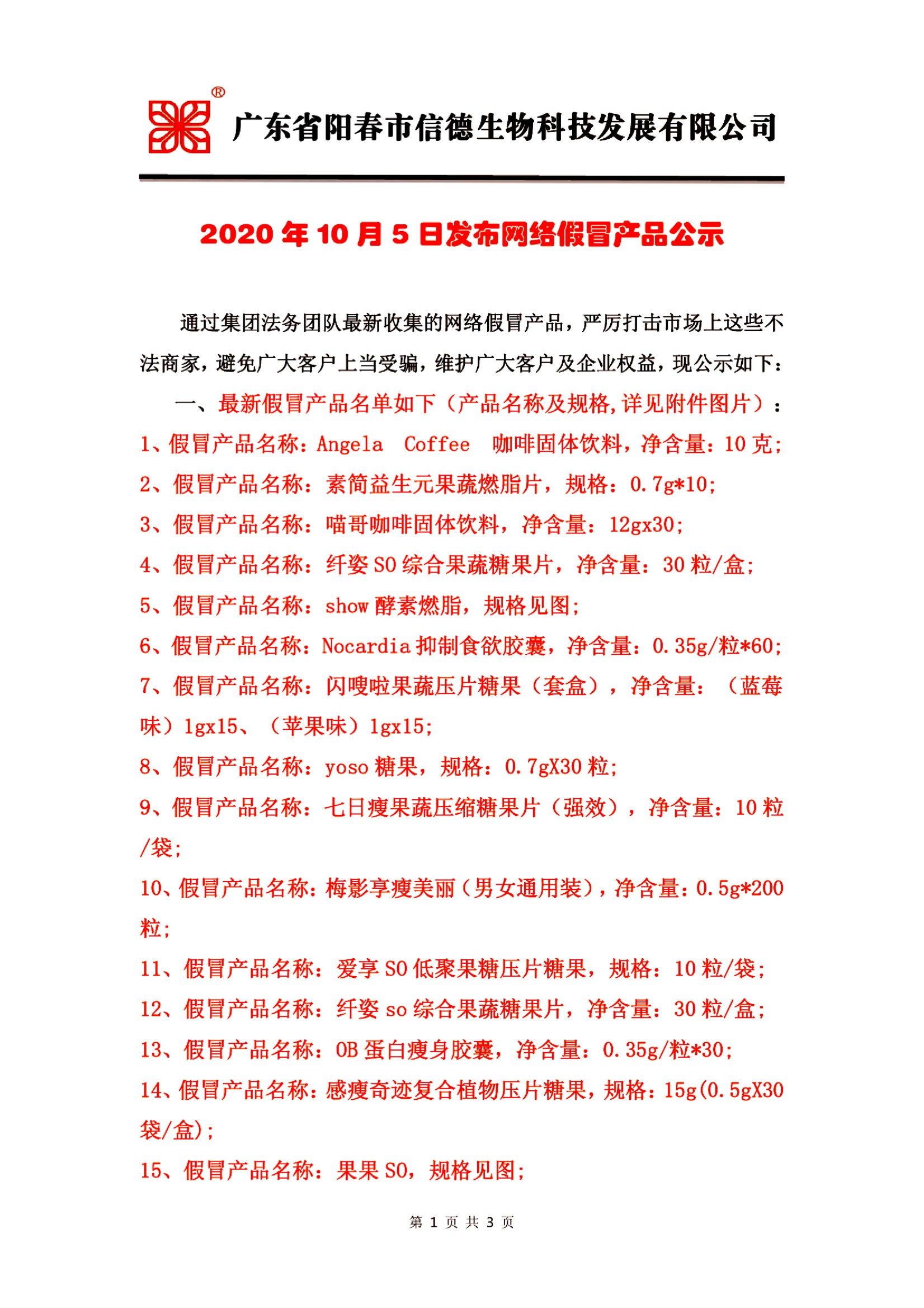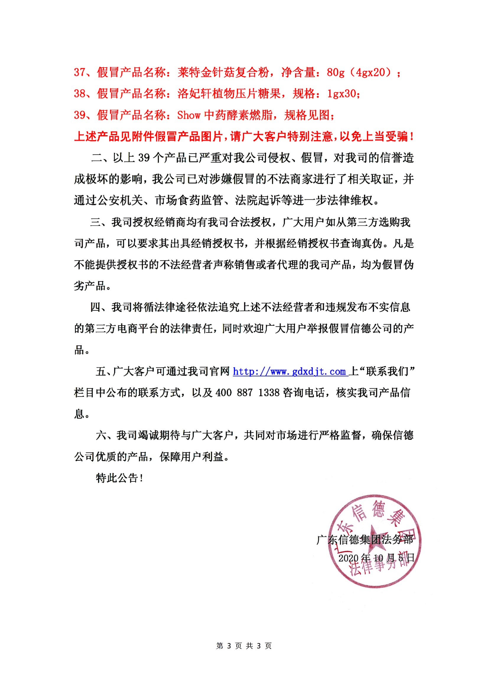 2020年10月5日发布严厉打击网络假冒产品公示!!!