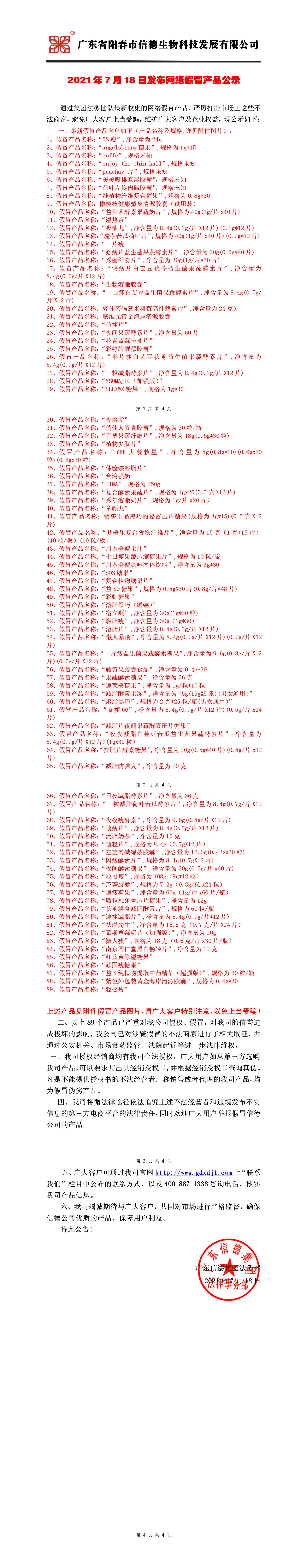 2021年7月18日广东信德集团发布网络假冒产品公示!!!