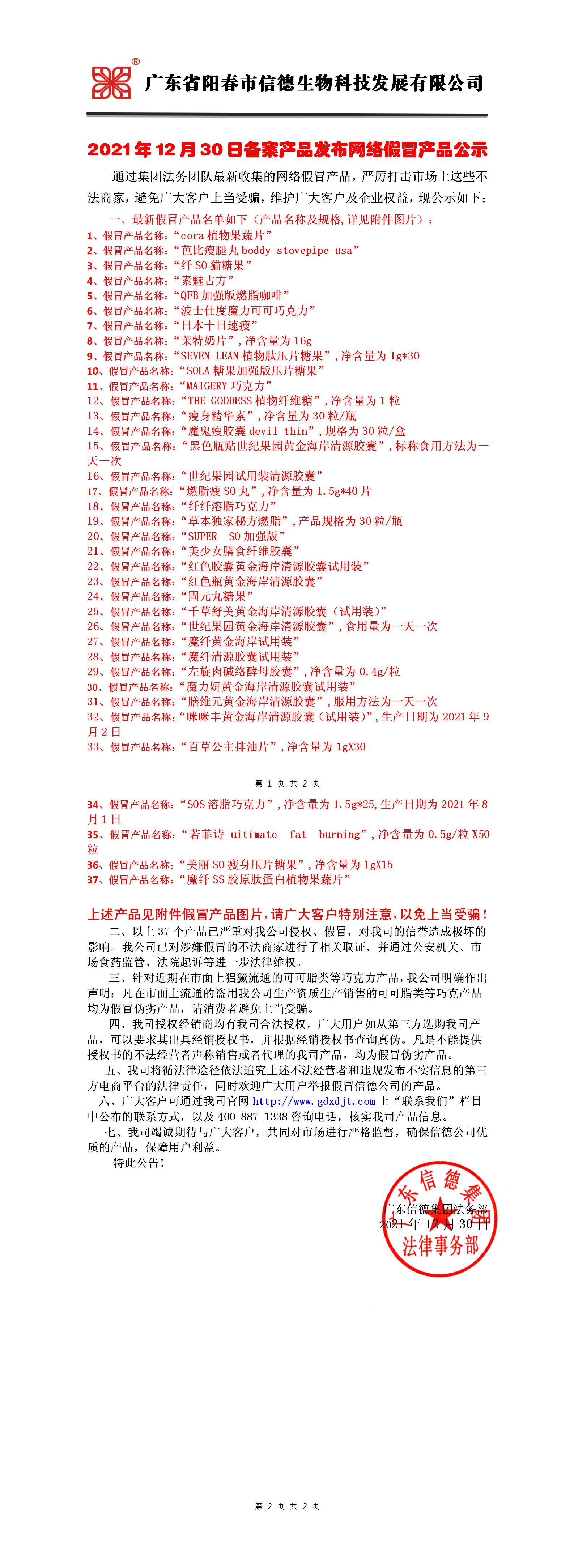 2021年12月30日备案产品发布网络假冒产品公示!!!