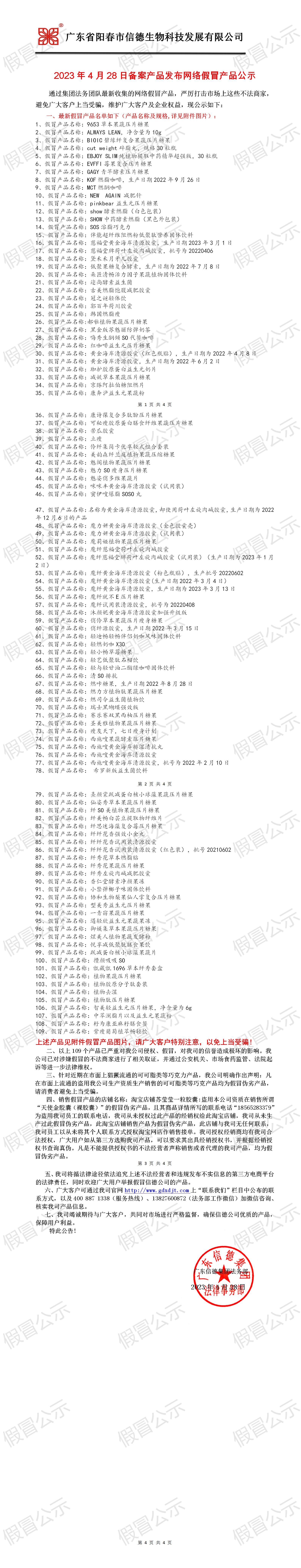 2023年4月28日备案产品发布网络假冒产品公示!!!