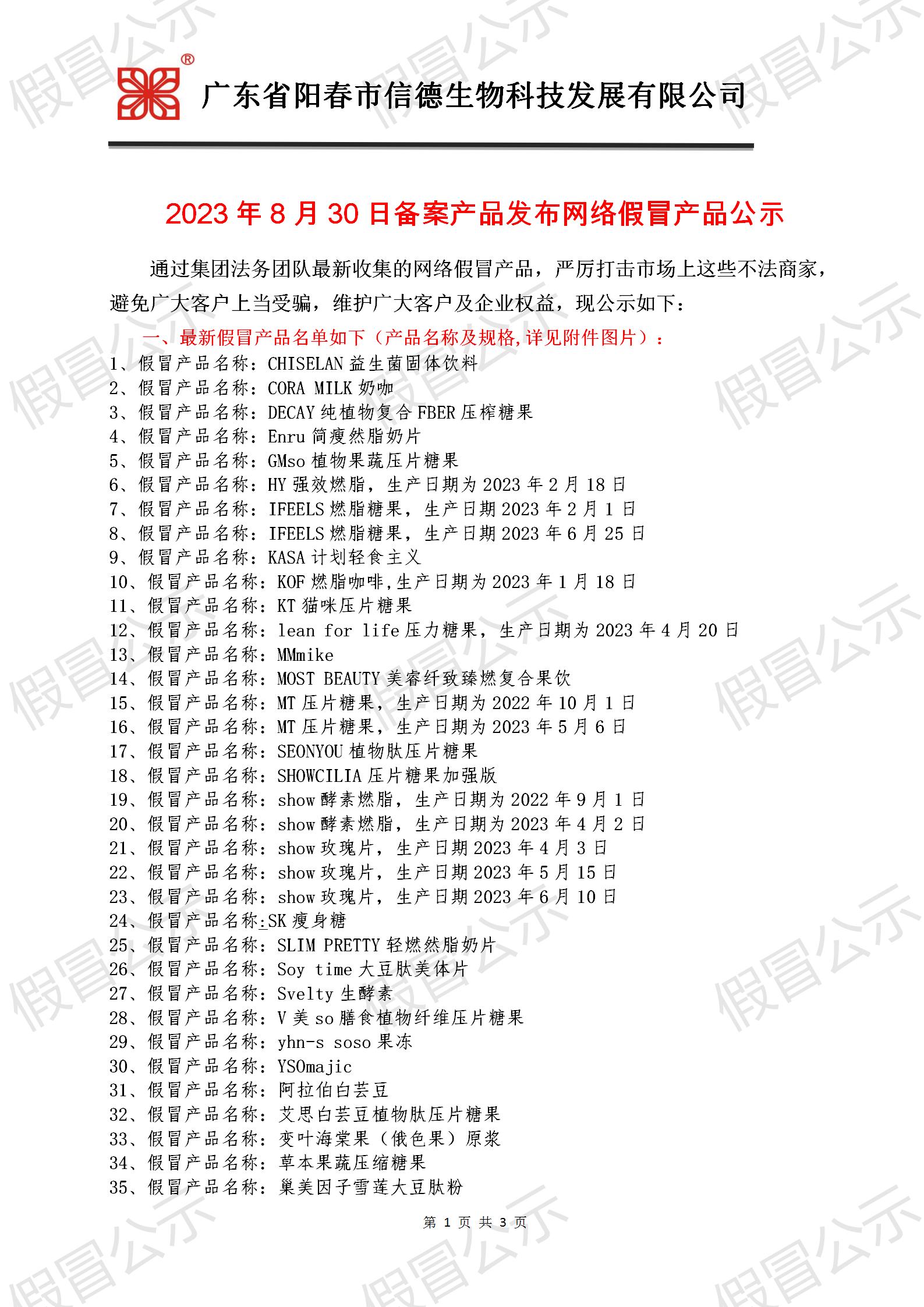 2023年8月30日备案产品发布网络假冒产品公示!!!