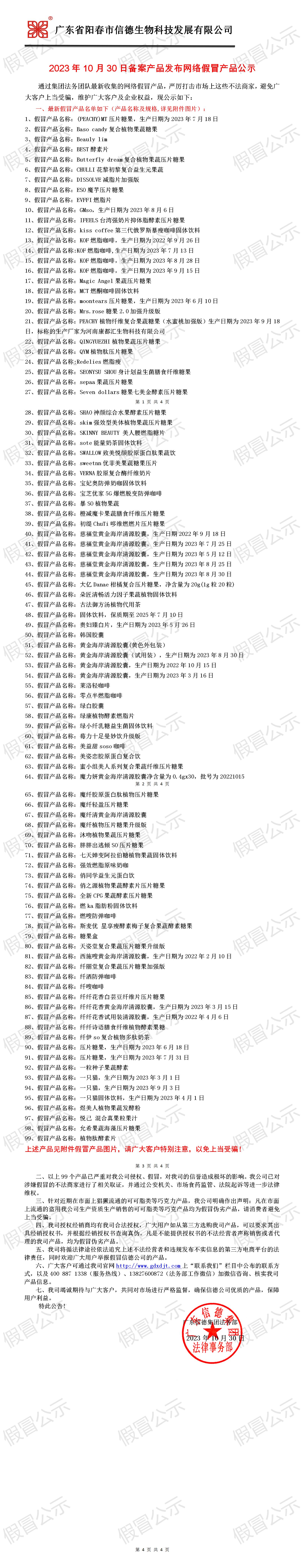 2023年10月30日备案产品发布网络假冒产品公示!!!