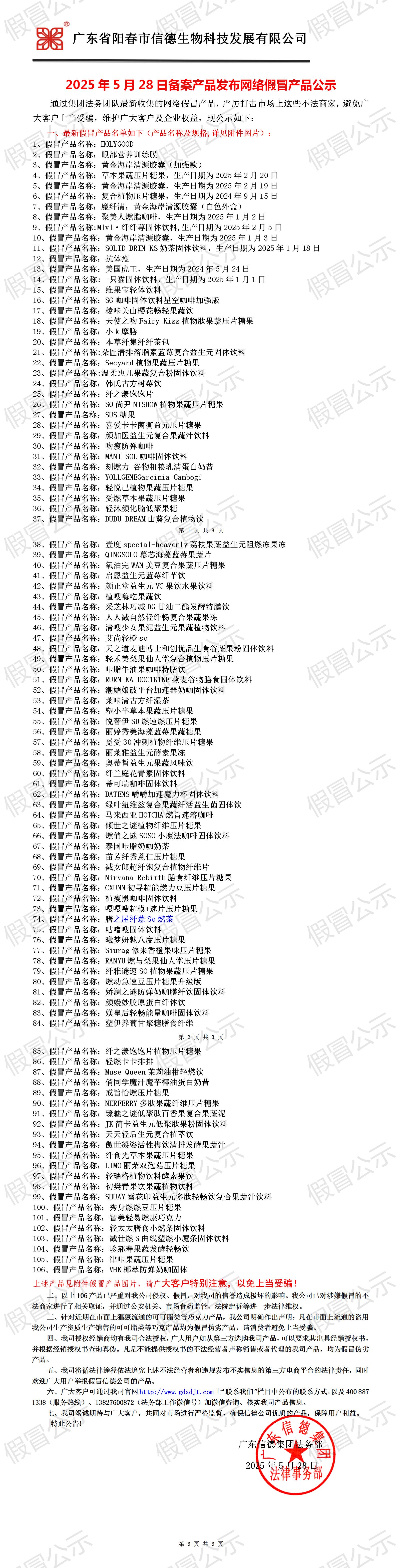 2025年5月28日备案产品发布网络假冒产品公示!!!