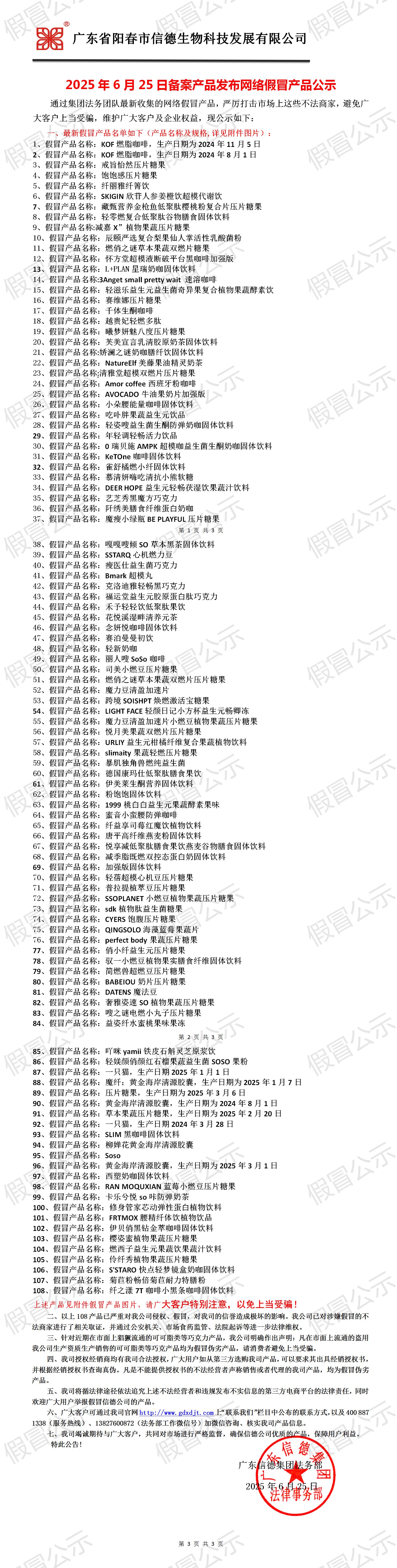 2025年6月25日备案产品发布网络假冒产品公示!!!