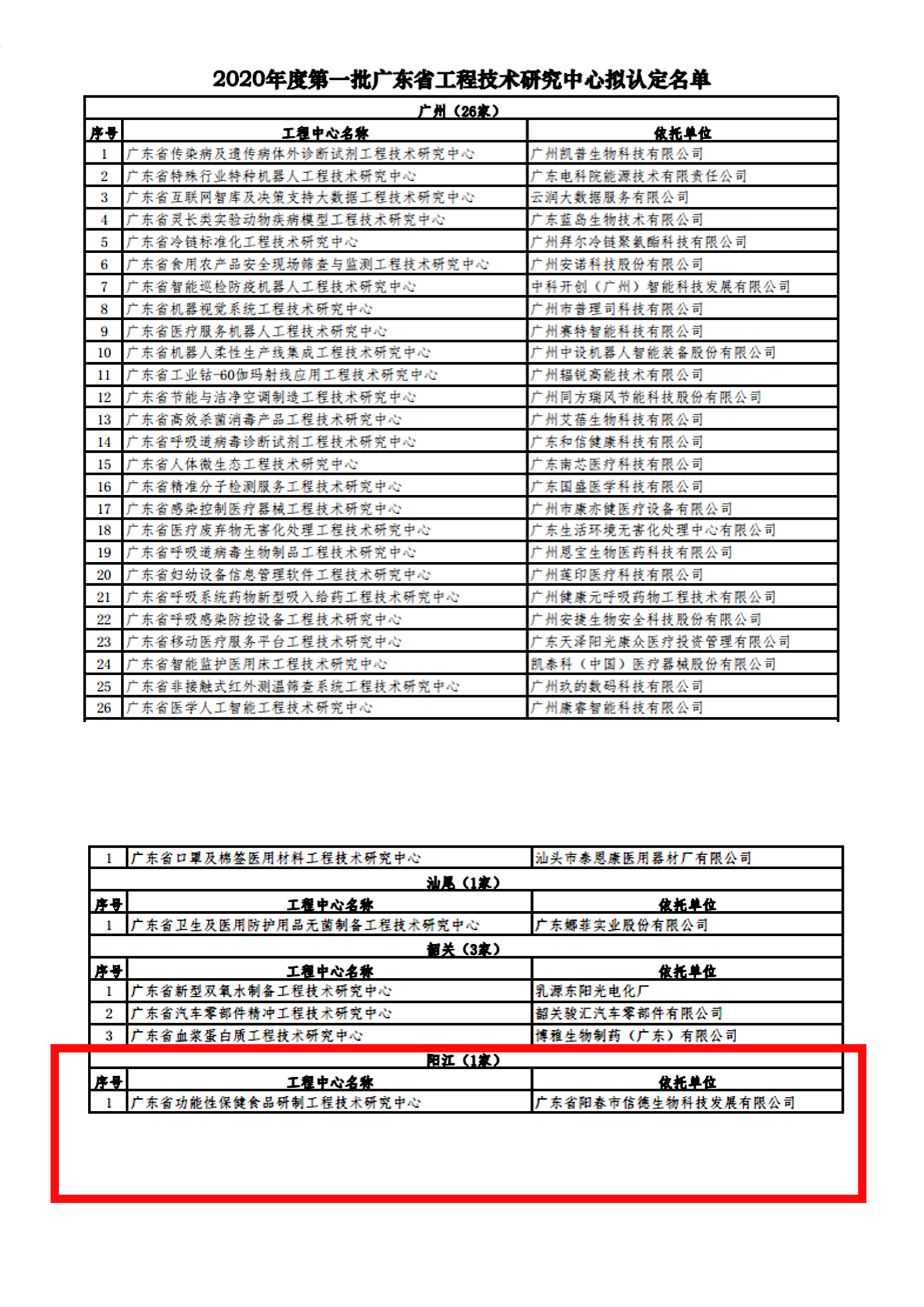 广东省科学技术厅关于拟认定2020年度第一批广东省工程技术研究中心名单的公示:http://gdstc.gd.gov.cn/zwgk_n/tzgg/content/post_2977831.html